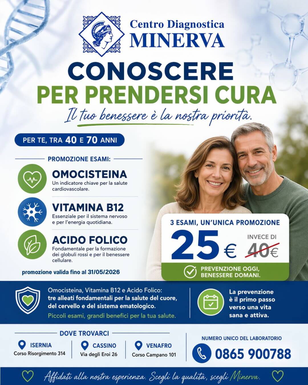 Il Centro Diagnostica Minerva è convenzionato per le analisi cliniche con il S.S.N. per la regione Molise ed esegue ogni tipologia di analisi. Eseguiamo tutti i tipi di analisi. Nei nostri Laboratori potrai sottoporti ad esami del sangue, delle urine, delle feci, esami per la fertilità, esami microbiologici (tamponi faringei, tamponi oculari, tamponi vaginali ecc.), dosaggi ormonali, esami sulla fertilità, esami citologici (pap-test, esami citologici nasali ecc.) ed esami istologici.